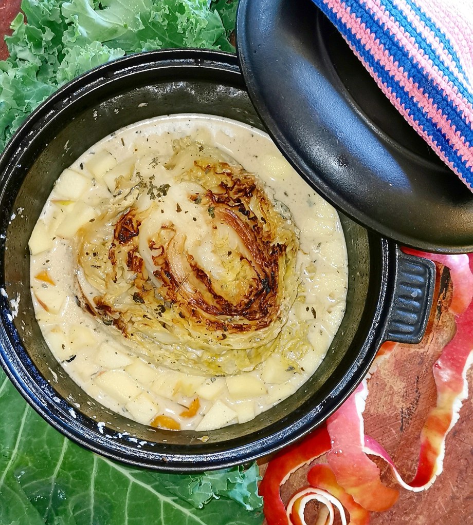 Hacka färsk grönkål så att du har 5 dl hack. Stek i en skvätt olja ett par minuter utan att den får färg. Den ska bara svettas lite. Häll åt sidan i en skål och låt svalna.