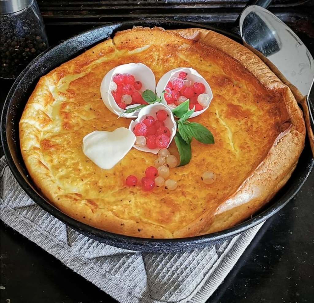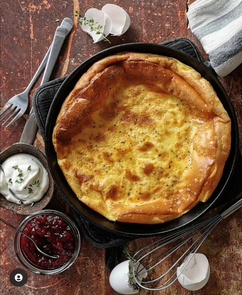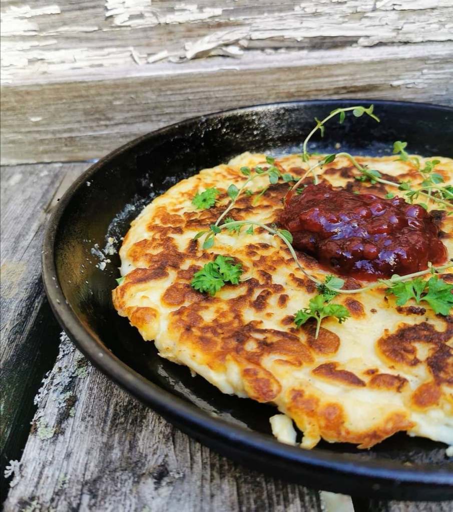 Är det något jag älskar så är det en rejäl äggakaga. Älskar att äta den med rårörda lingon eller med grädde och sylt. Till originalet äter man fläsk som man stekt och använder fettet från fläsket i själva äggakagan. Det skippar jag och kör på min egna variant. Lite som en tjockpannkaka men med mindre mjöl.