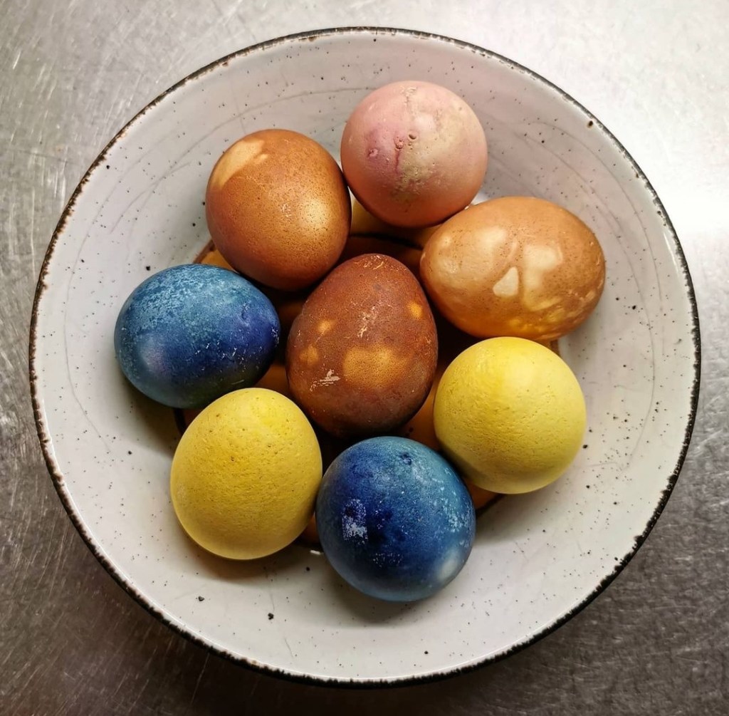 Något som jag verkligen älskar att göra vid påsk, är att färga ägg. Det blir så himla fint tycker jag och väldigt rogivande som pyssel. Blåsa ägg har jag inte gjort på många år. Jag får så förbannat ont i käken.