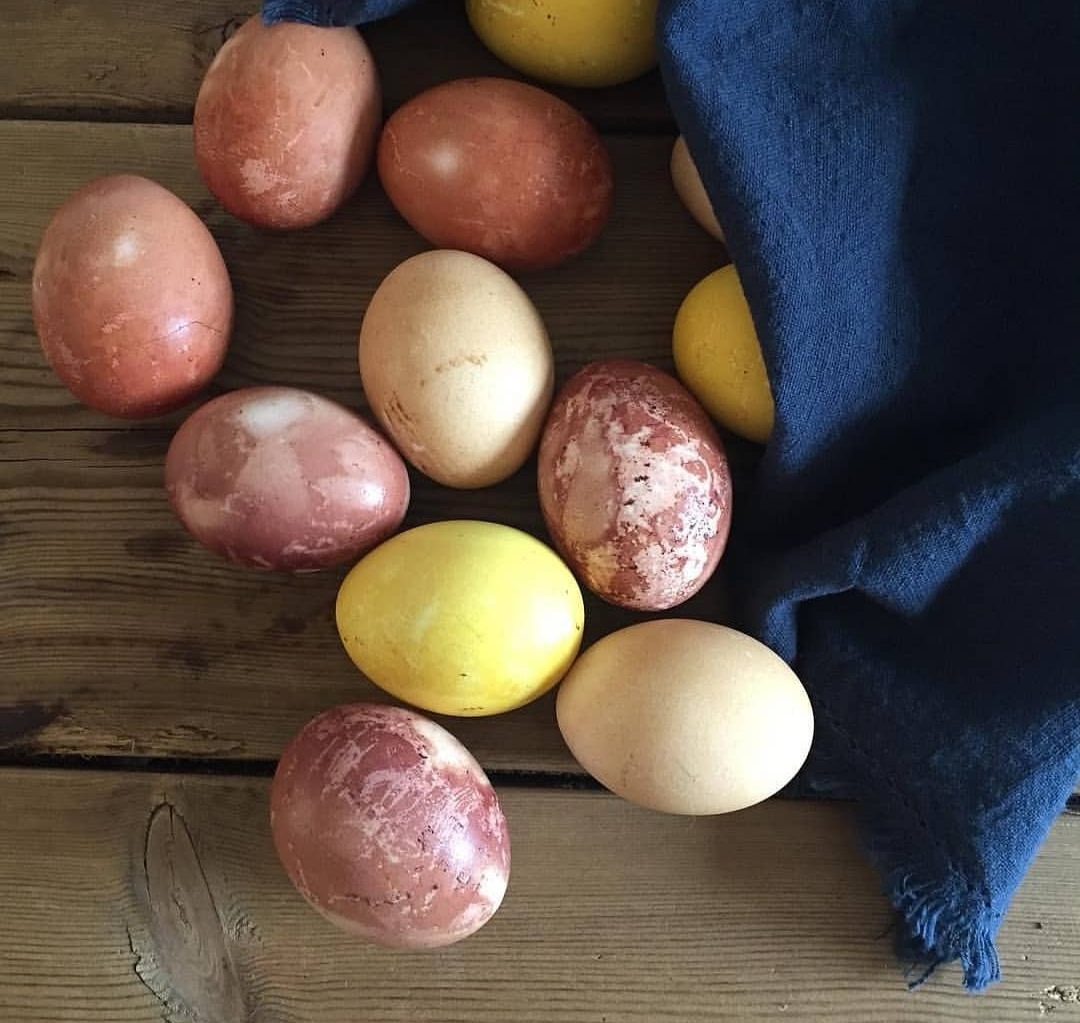 Dessa ägg är endast färgade med saker som finns i mitt kök.