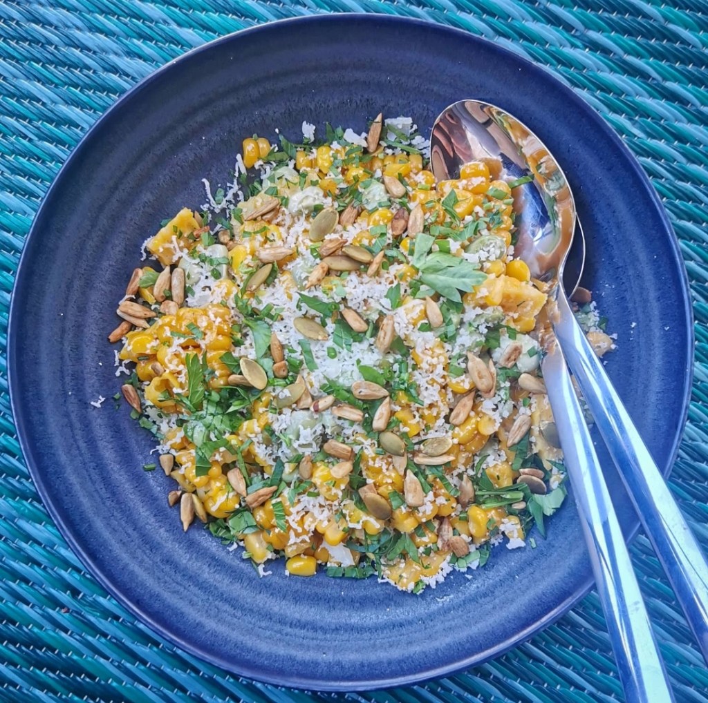 Skölj kikärtorna. Tärna tomat och gurka fint. Grovhacka örter samt chili. Blanda ihop ingredienserna i en skål. Pressa över saften från en lime, rör om. Smaka av med salt och peppar.
